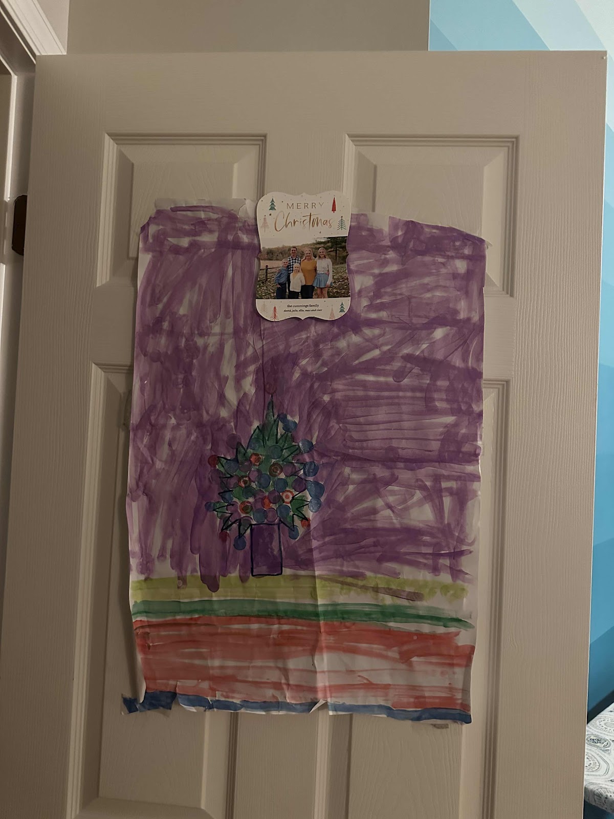 I started painting the hallway during this time away from work, and as part of it, I am finding that I want a cleaner fresher look. Yesterday I started taking some stuff down. I’ve cleaned off a couple doors. I want to empty our bedroom door as well. This has been hanging in her door for years and I love it. Clair made it as a Christmas decoration a few years ago. I’ve kept it up year-round for many years.
